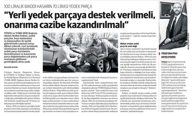 Başkanımız Sayın Ahmet Nedim Erdem'in Dünya Gazetesinde Yayımlanan "Yerli yedek parçaya destek verilmeli, onarıma cazibe kazandırılmalı" Röportajı