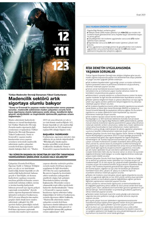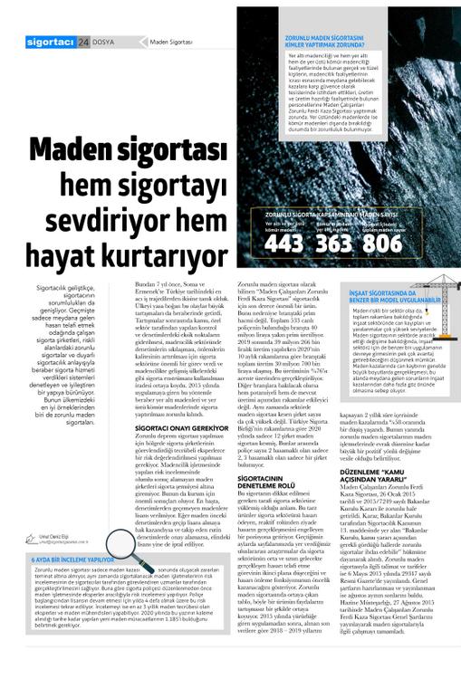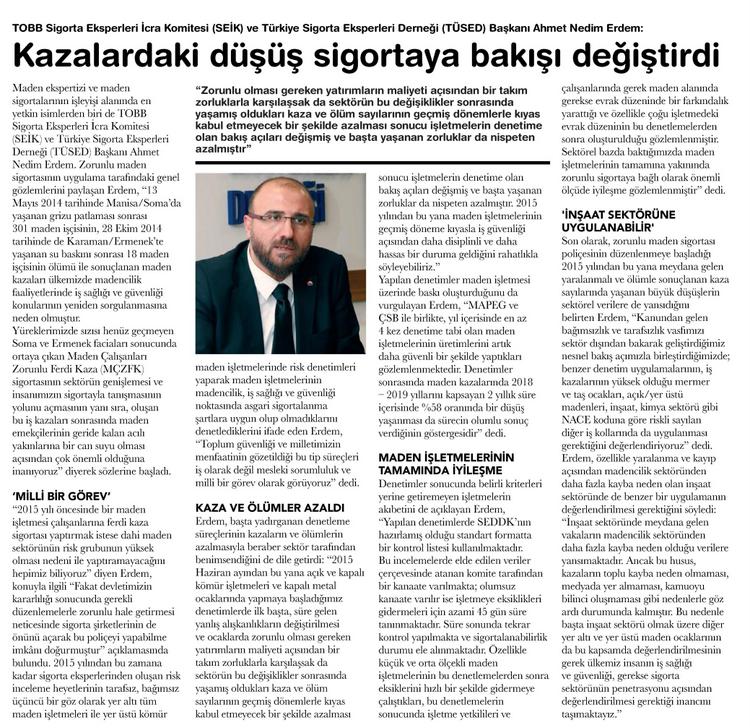 Sigortacı Gazetesinde Yayımlanan "Maden Kazalarındaki düşüş Sigortaya Bakışı Değiştirdi." Başlık Haber
